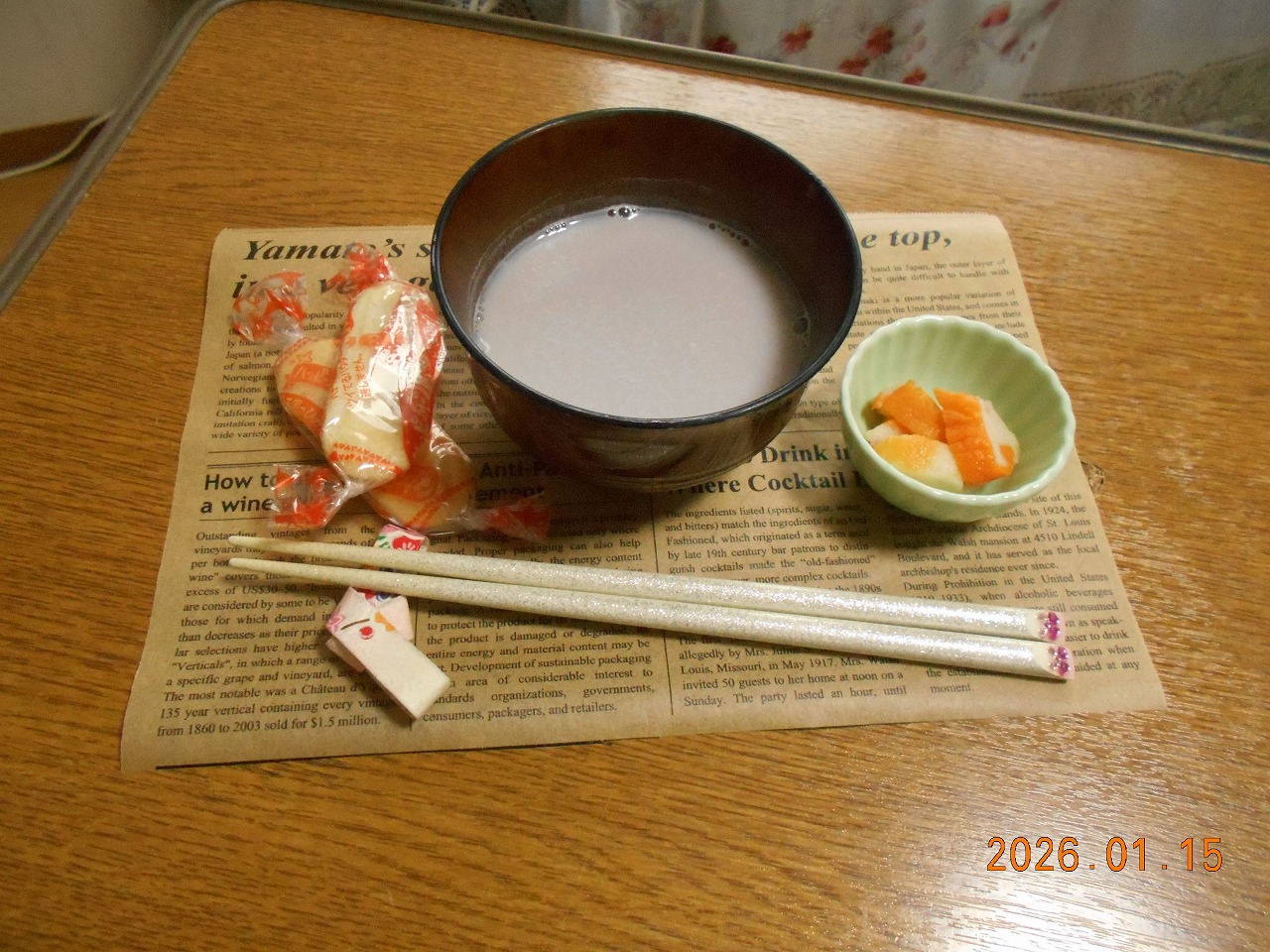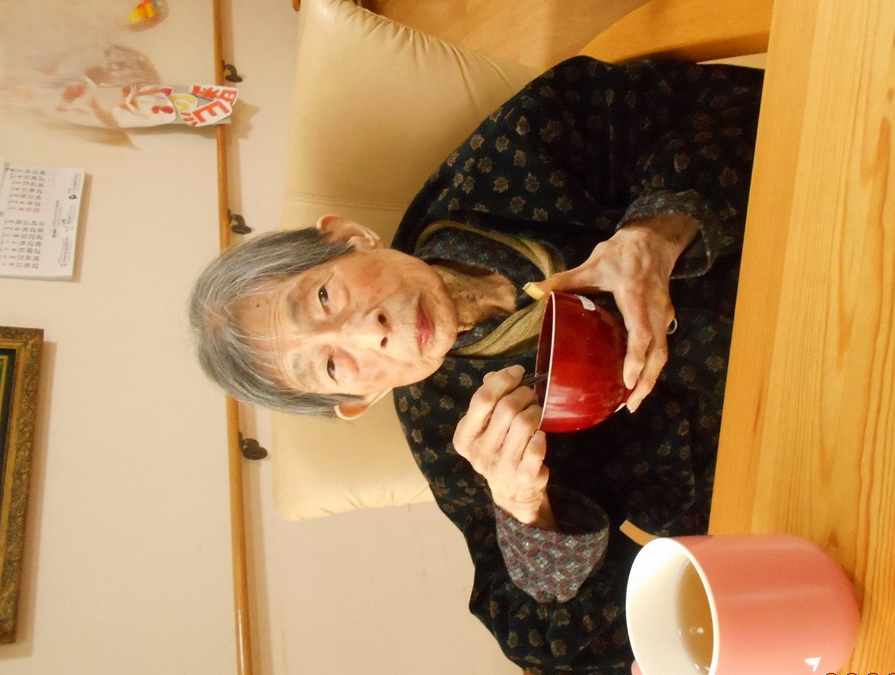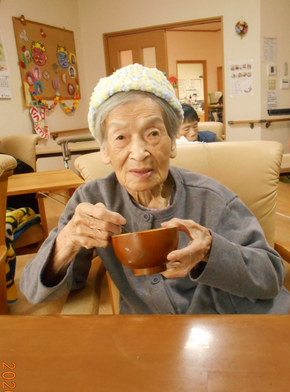 おやつにおしるこをいただき、からだも心もぽかぽかです(●´u`●)