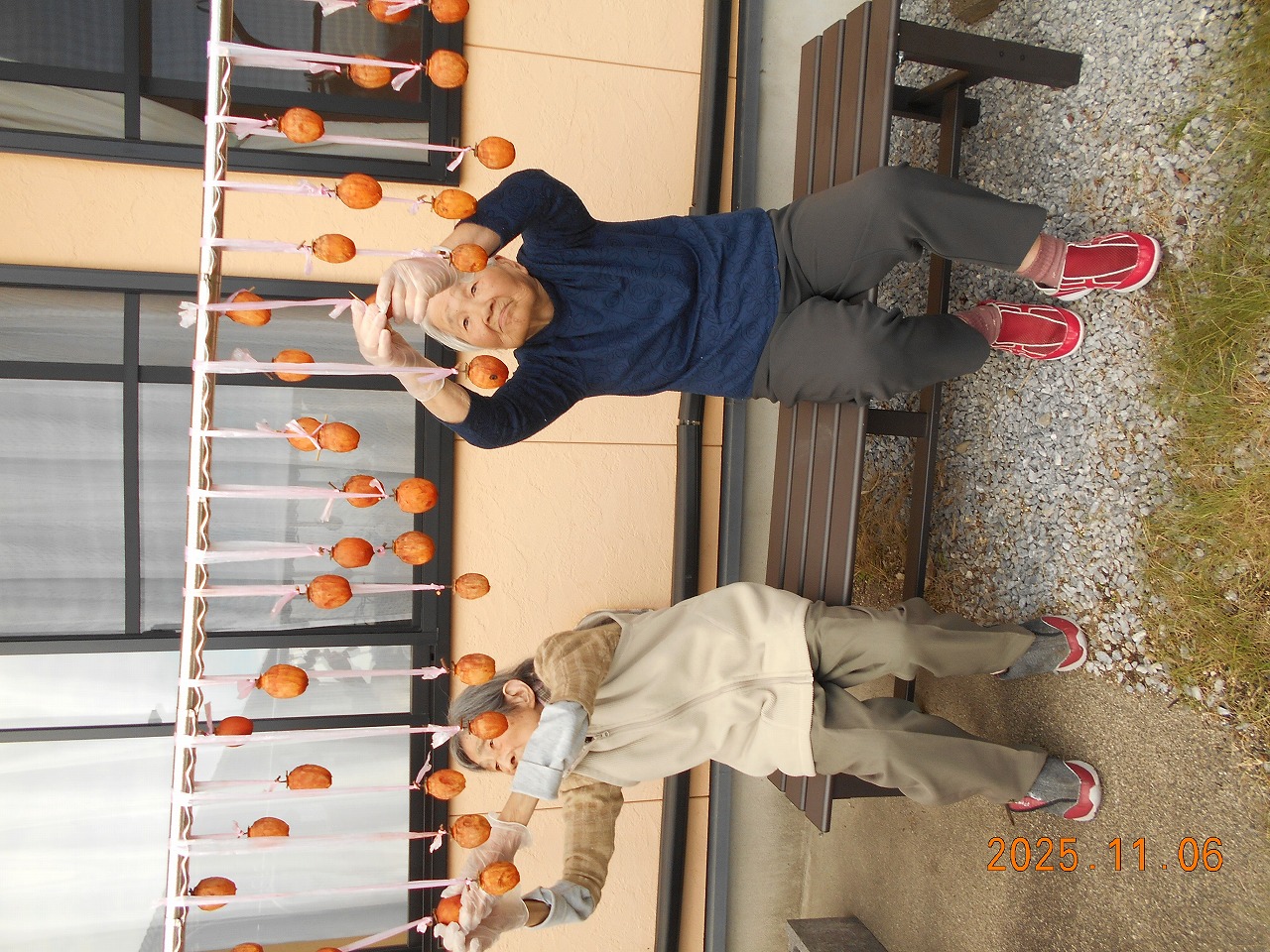 皮を剥いて紐をかけ、渋柿を干しました!甘~い干し柿ができました♪