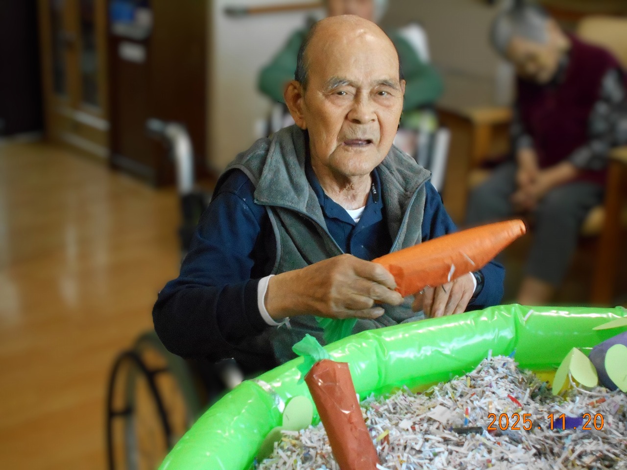 職員手作りの芋ほり体験で大盛り上がりでした!おやつのスイートポテトも美味しくいただけました(^^)