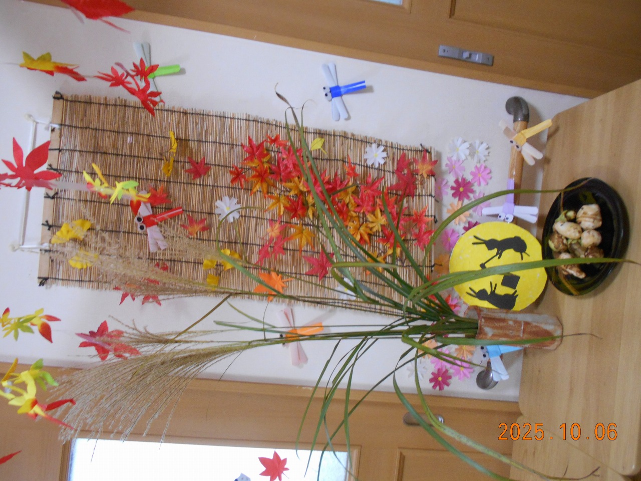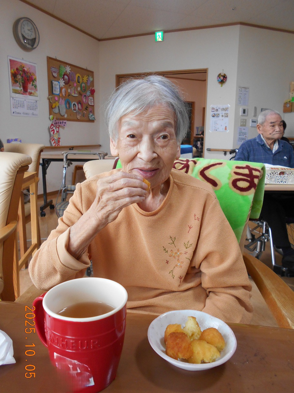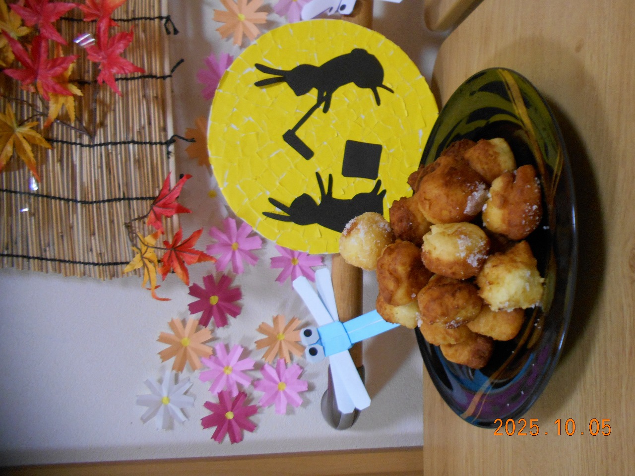 きょうのおやつは、お月見団子ならぬ、お月見ドーナツです!お月見ドーナツ、好評でした♪